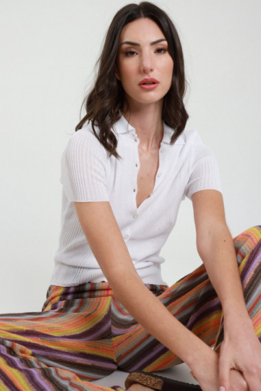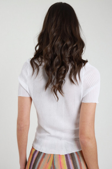 Maglia Rigata in Viscosa + Dettagli Bordi a Costine in Lurex.