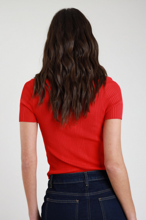 Maglia Rigata in Viscosa + Dettagli Bordi a Costine in Lurex.