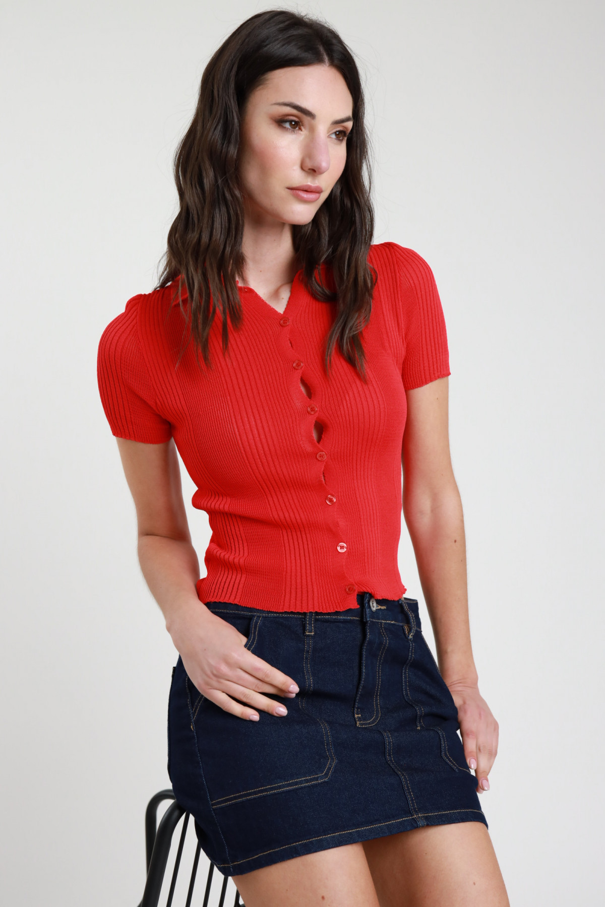 Cardigan Crop in Maglia di Cotone Traforata, Chiusura 3 Bottoni.