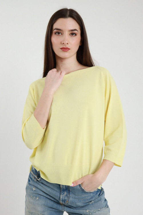 Maglia in Cotone Punto Riso Manica 3/4, Scollo Barchetta.