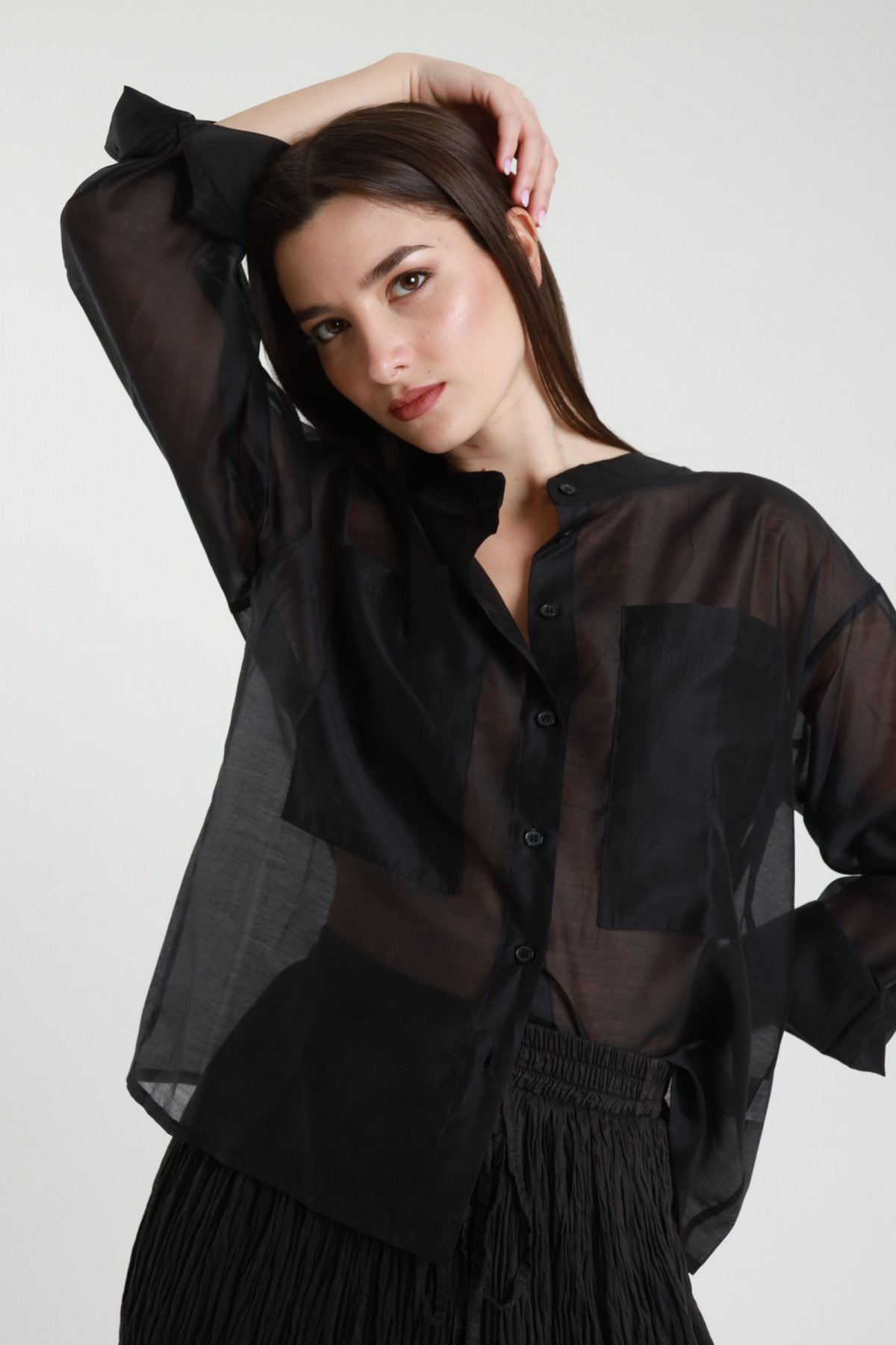 Camicione Over Semitrasparente con Tasconi sul Fronte.