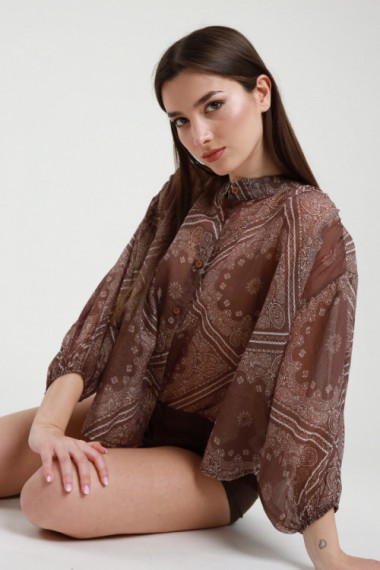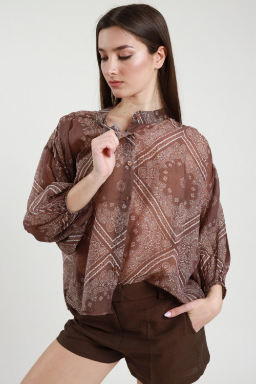 Camicia Coreana Stampa Bandana, Polsini con Elastico e Riprese sul Retro.