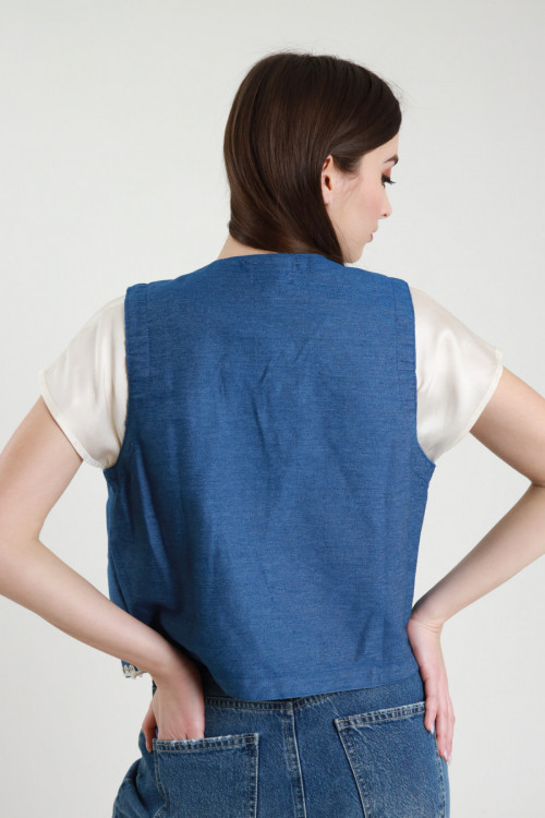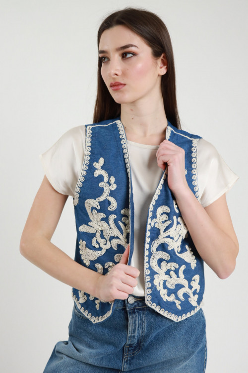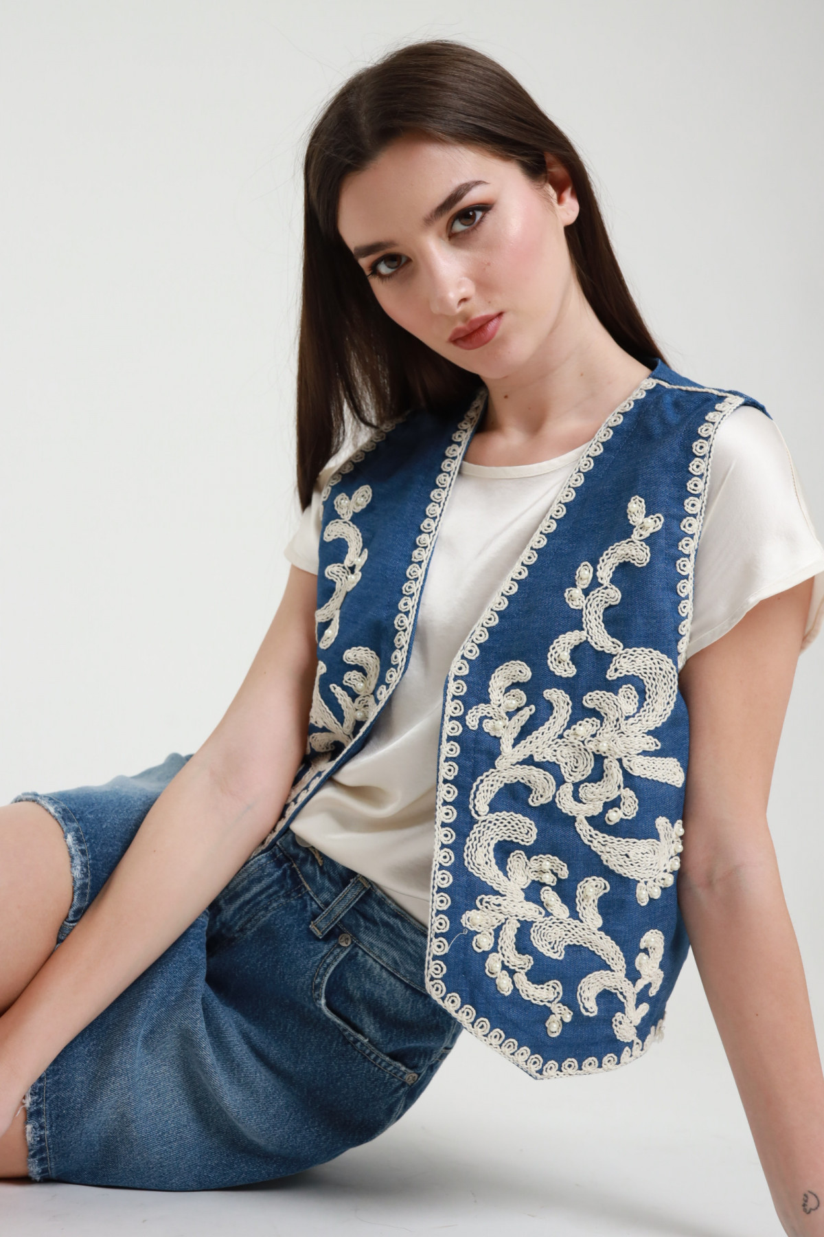 Gilet Ricamato sul Fronte con Perline Applicate.