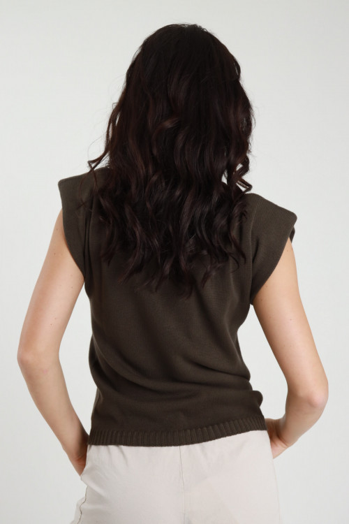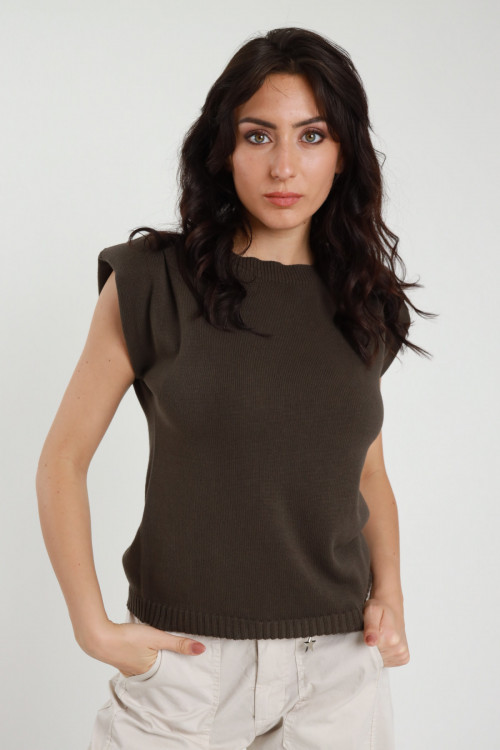 Maglia in Cotone Smanicata, Girocollo con Spalline.