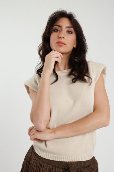 Maglia in Cotone Smanicata, Girocollo con Spalline.