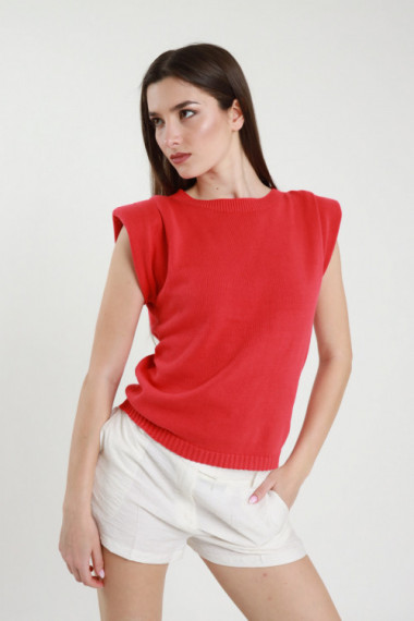 Maglia in Cotone Smanicata, Girocollo con Spalline.