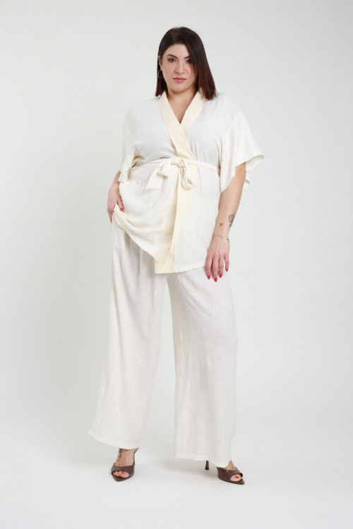 Completo Elasticizzato con Blusa Mezze Maniche e Scollo a V e Pantalone a Palazzo - Linea Curvy Susy Star.