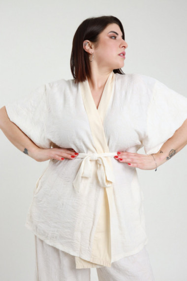 Kimono in Jacquard Mezze Maniche con Cintura in Vita - Linea Curvy Susy Star.