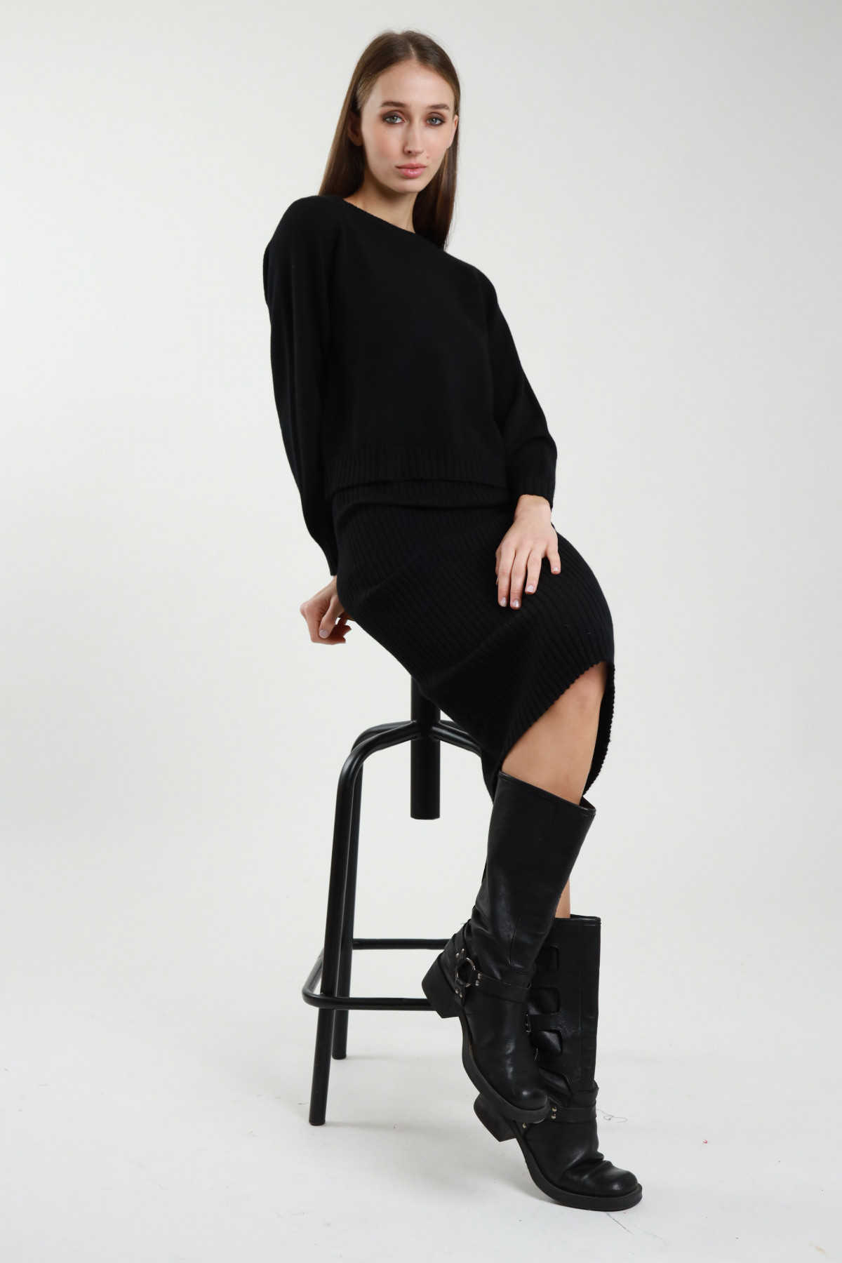 Rundhalspullover mit englischem Rippmuster. 50 % Stück, 30 % Stück, 10 % Stoff, 10 % Stoff