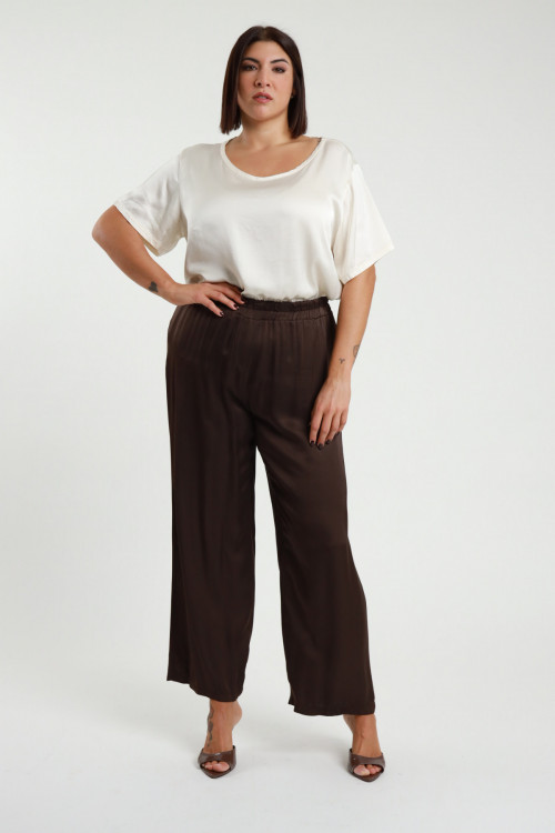 Pantaloni Dritti in Raso di Viscosa con Elastico in Vita - Linea Curvy Susy Star.