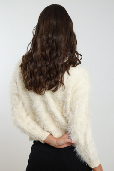 Cardigan Ecopelliccia con Chiusura a Bottoni e Orli in Maglia