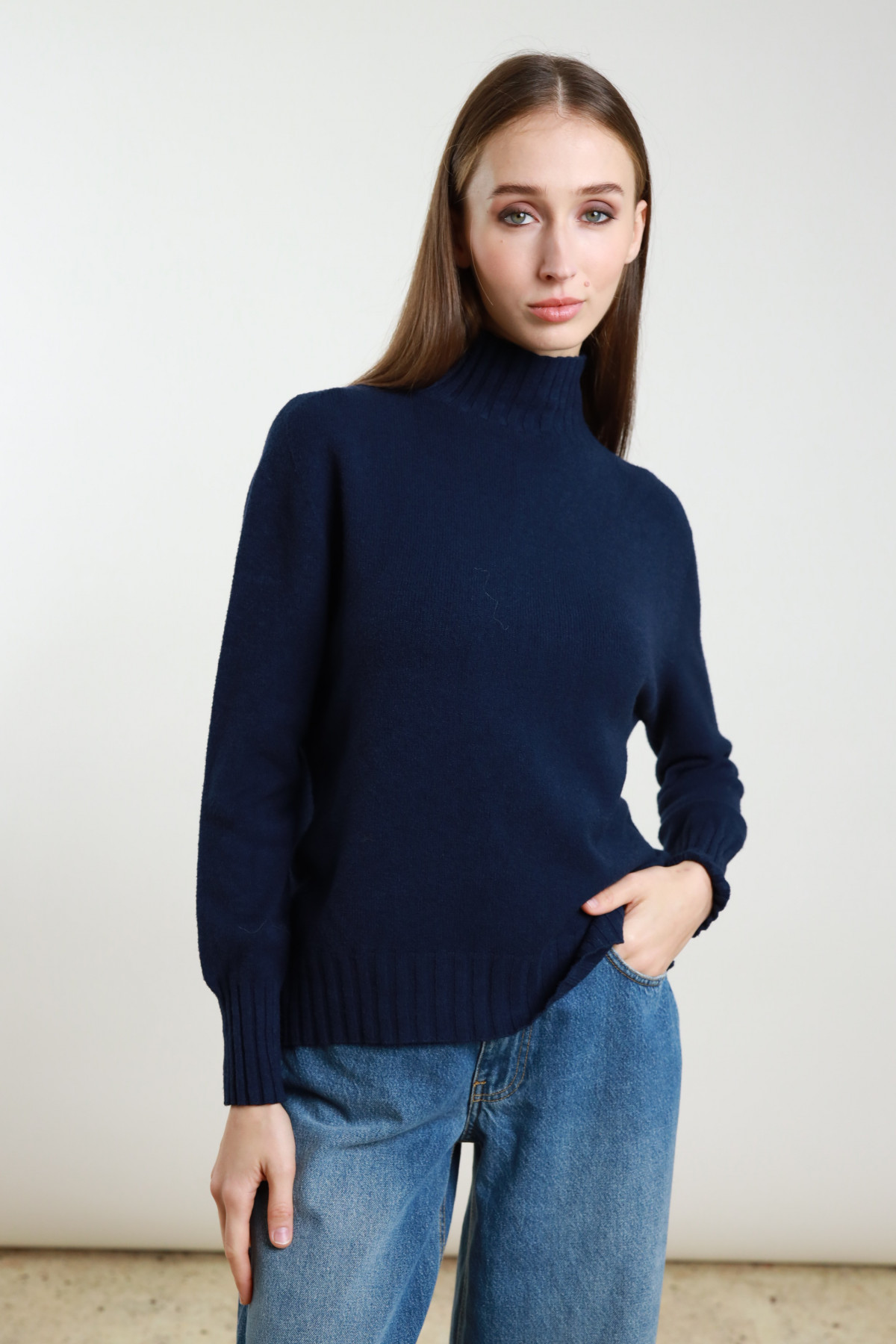 Pull Over Collo Alto con Orli a Coste e Spacco sul Retro.