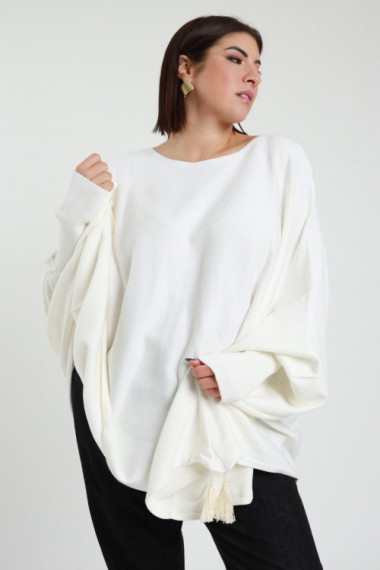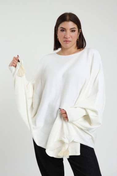Maglia Over con PonPon sul Fondo, Maniche Strette a Costine - Linea Curvy Susy Star.