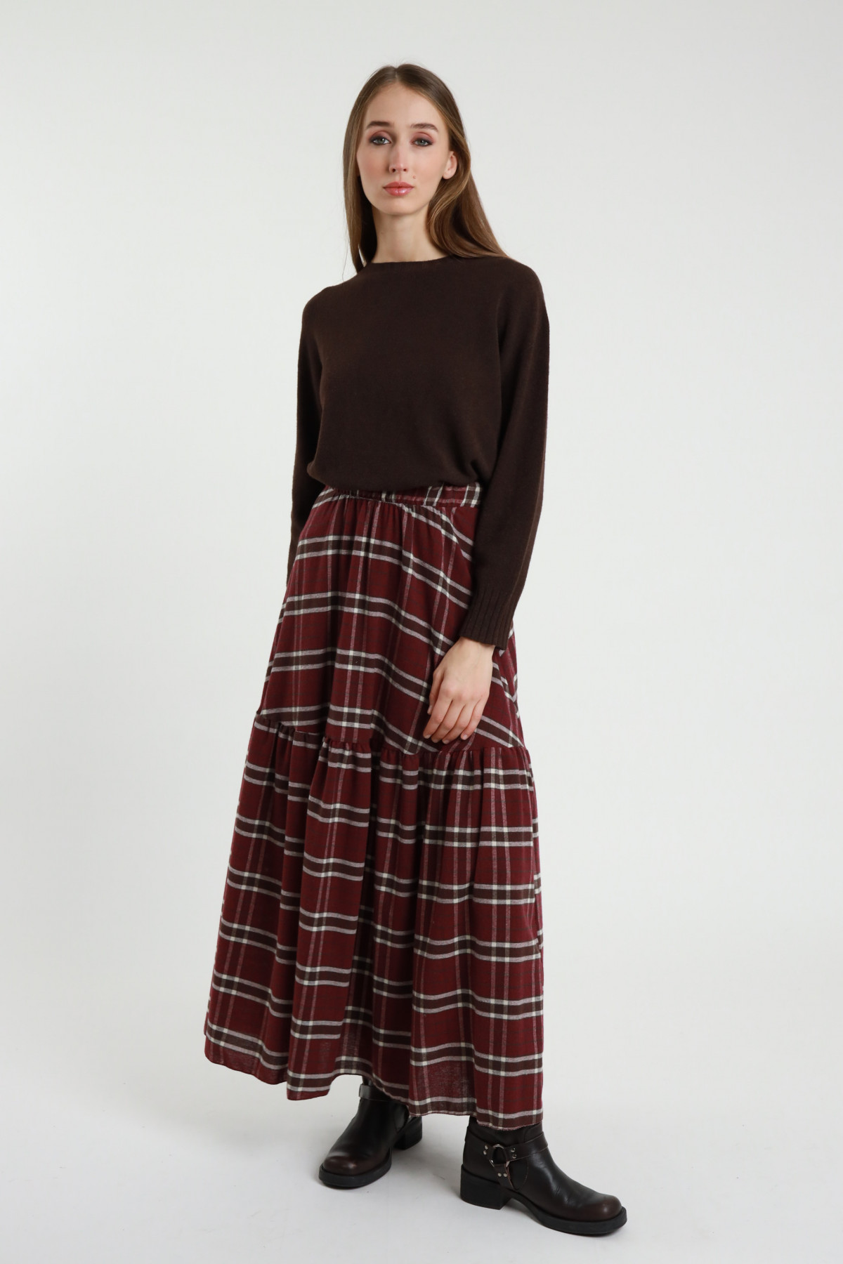 Gonnellone Check con Elastico in Vita e Balza sul Fondo.