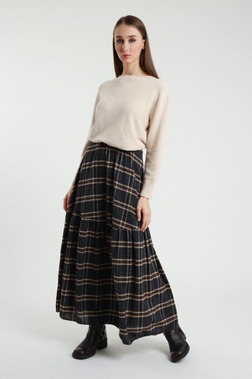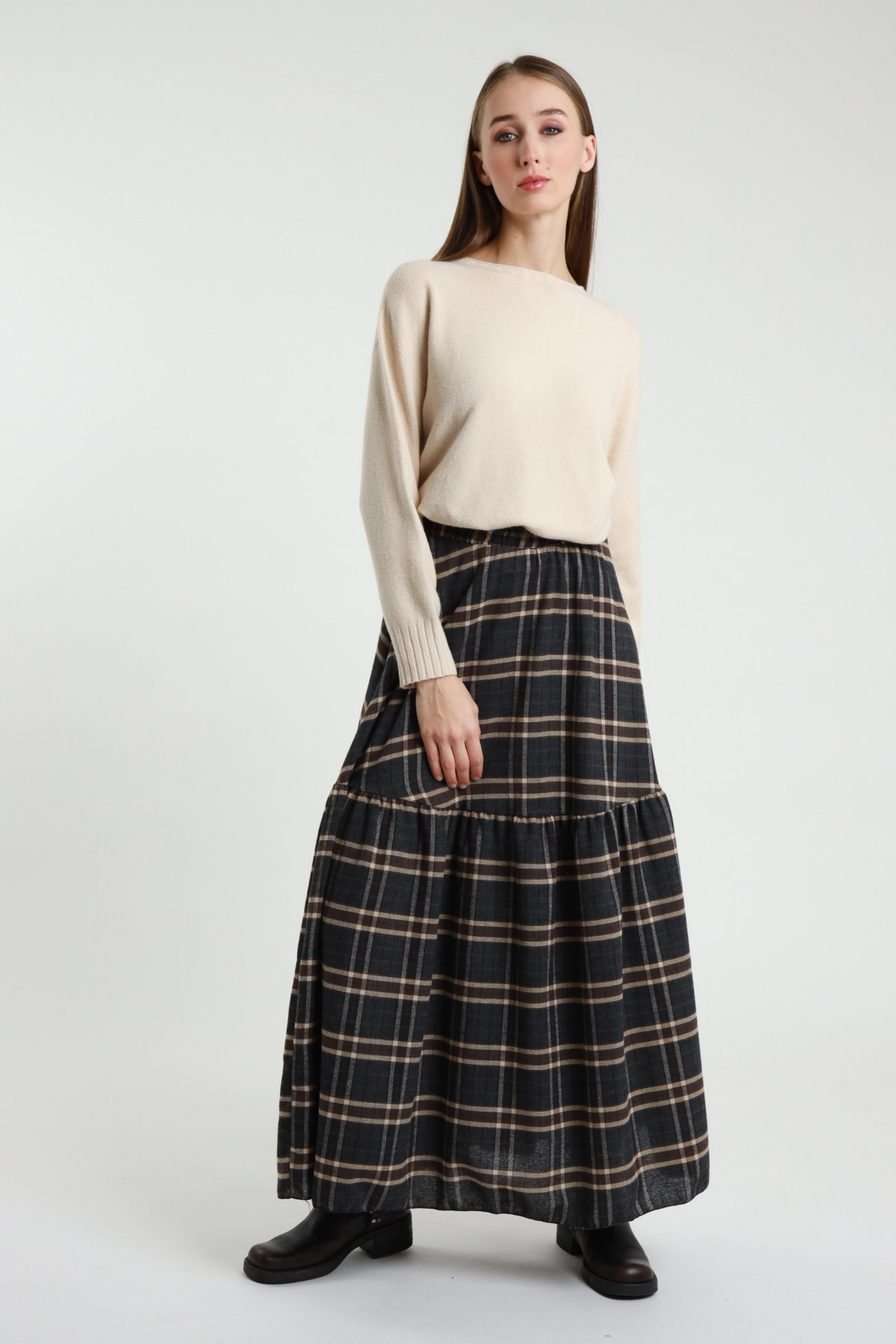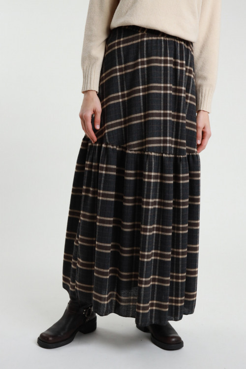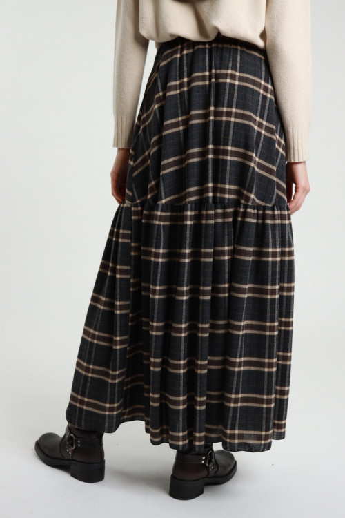 Gonnellone Check con Elastico in Vita e Balza sul Fondo.