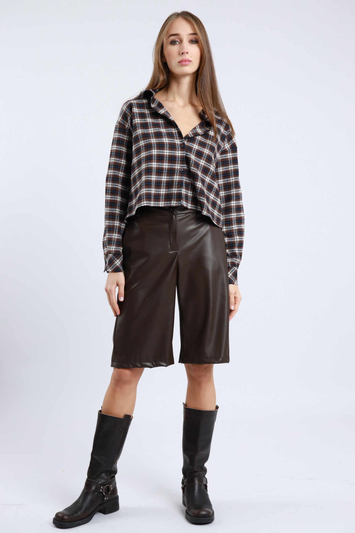 Bermuda in Ecopelle con Chiusura Zip e Bottone, Elastico in Vita, 2 Tasche.