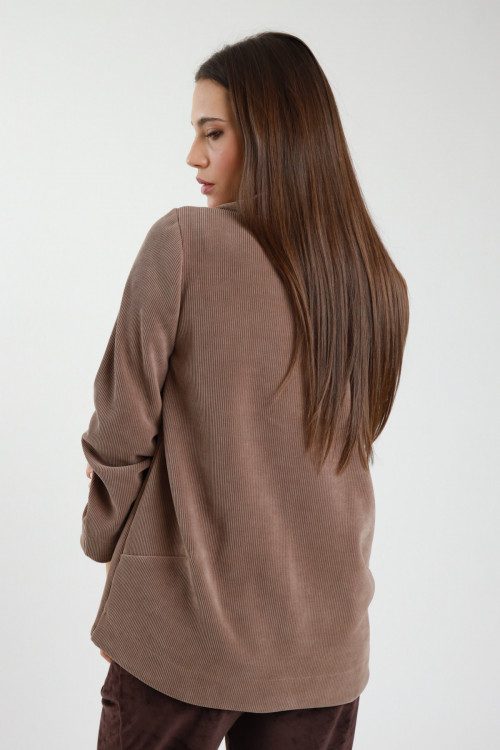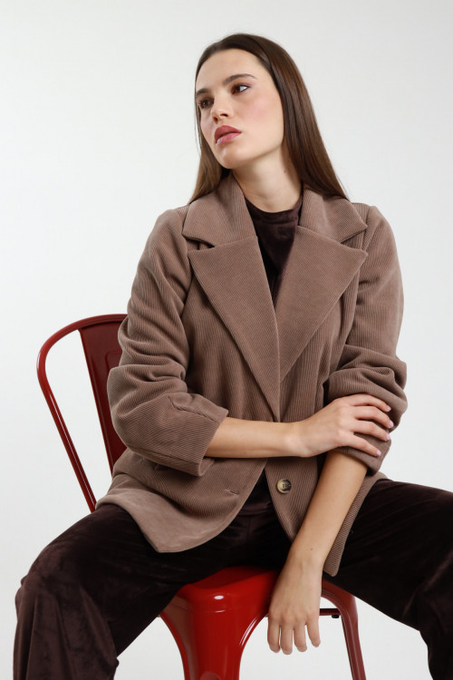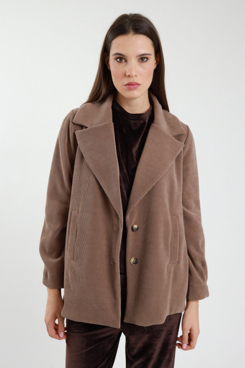 Blazer Monopetto in Velluto a Coste con Chiusura 2 Bottoni, Tasche Filetto.