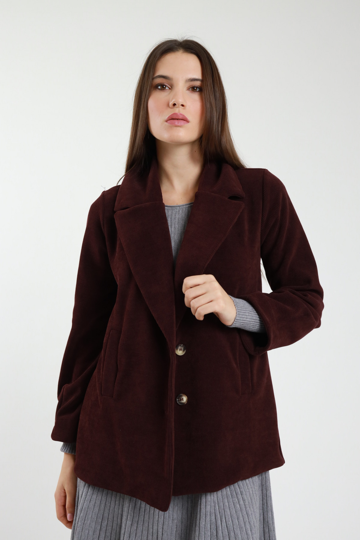 Blazer Monopetto in Velluto a Coste con Chiusura 2 Bottoni, Tasche Filetto.