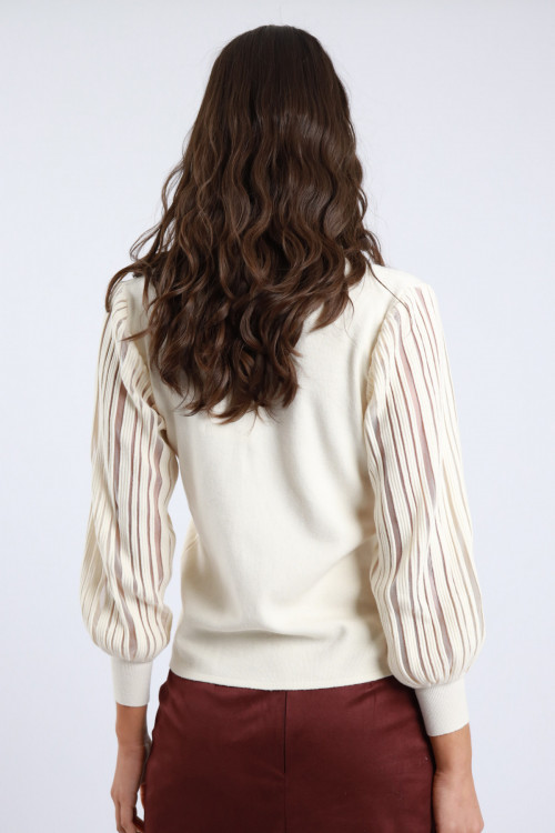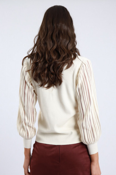 Cardigan con Chiusura a Bottoni e Maniche a Palloncino Semitrasparenti.