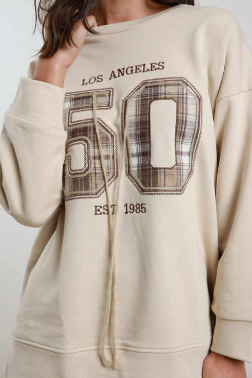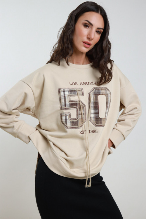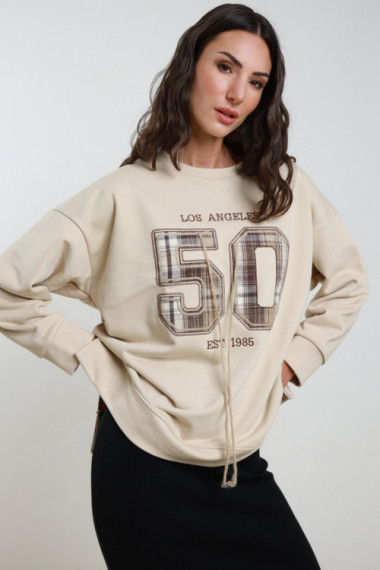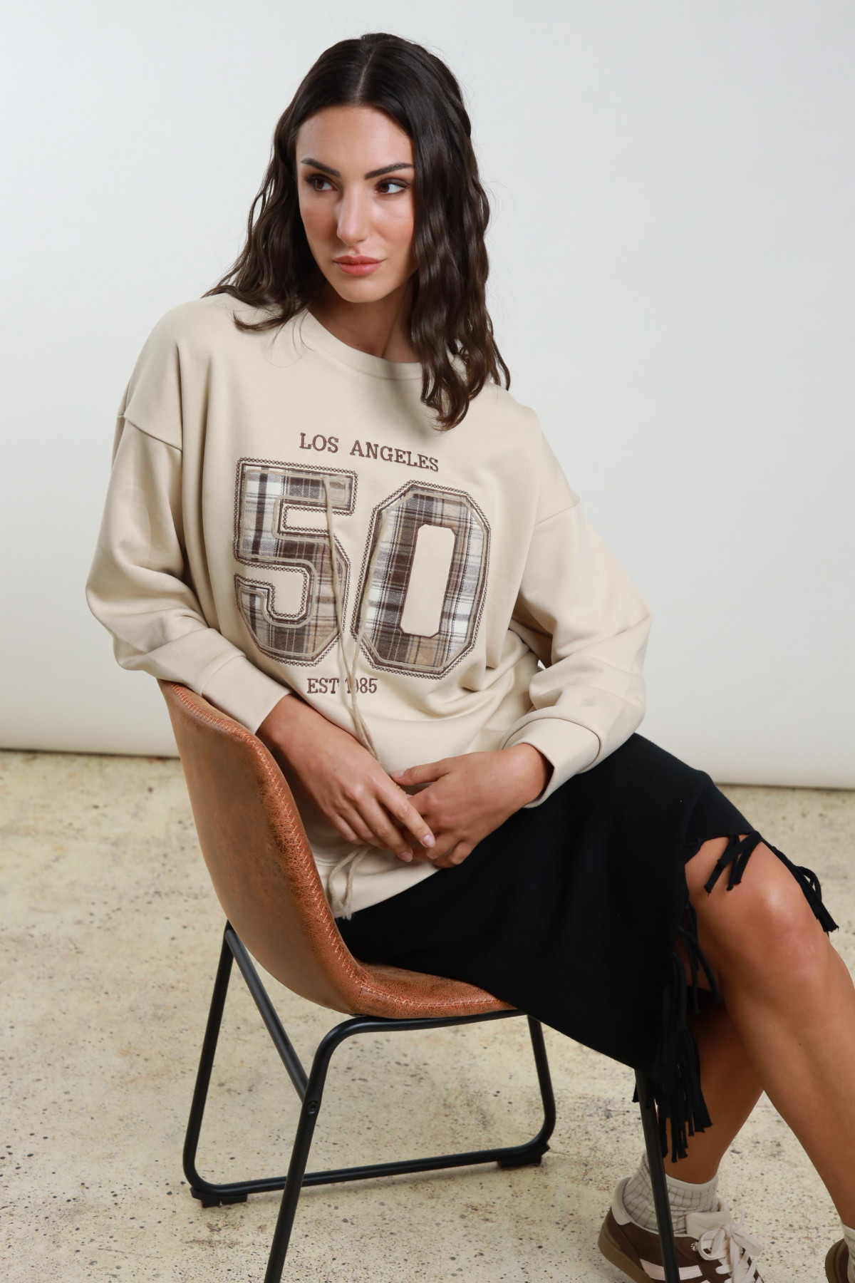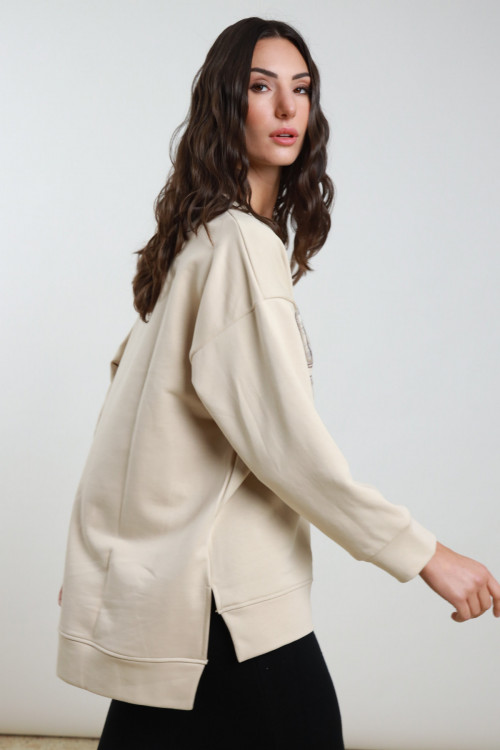 Felpa Girocollo Over Maniche Lunghe con Ricamo ''More Love'' sul Fronte.