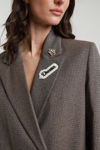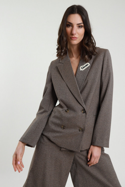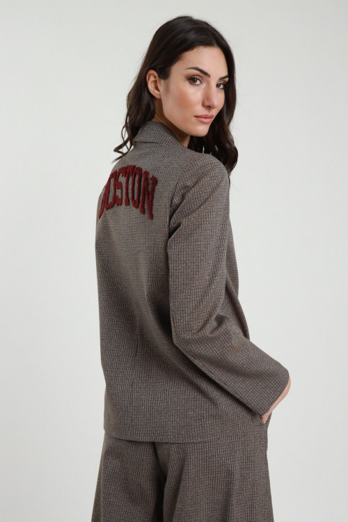 Giacca Doppiopetto con Applicazione Patch sul Rever Classico e Scritta Ricamata sul Retro.