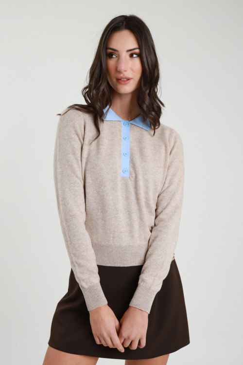 Maglioncino Polo con Colletto a Contrasto. Bordi a Costine.