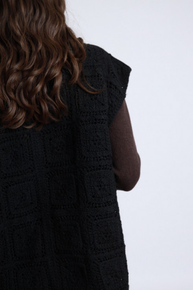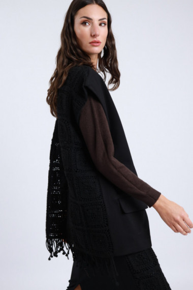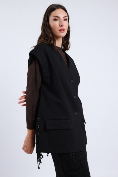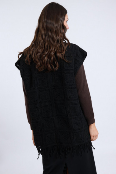 Gilet Over Chiusura con Bottoni. Frange sul Fondo e Retro in Crochet.