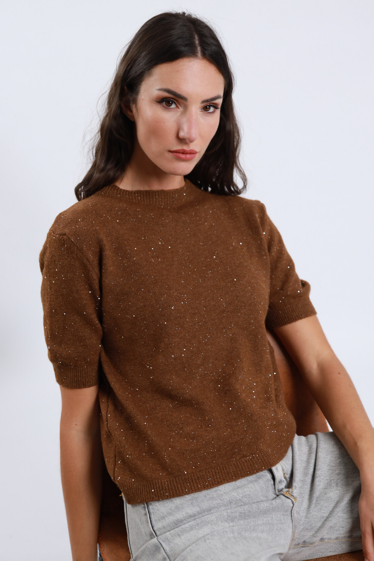 Maglia Maniche Corte Paricollo con Applicazione Micro Paillettes.