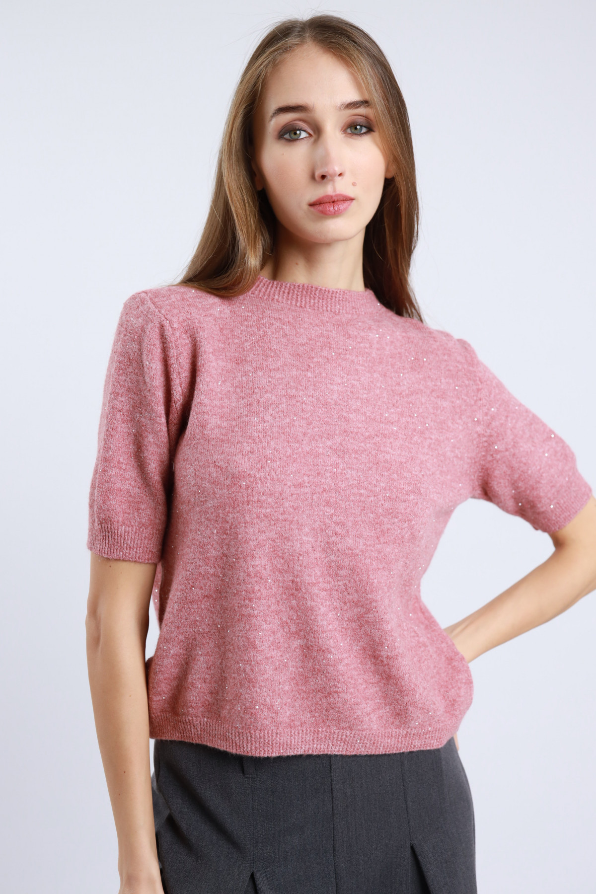 Maglia Maniche Corte Paricollo con Applicazione Micro Paillettes.