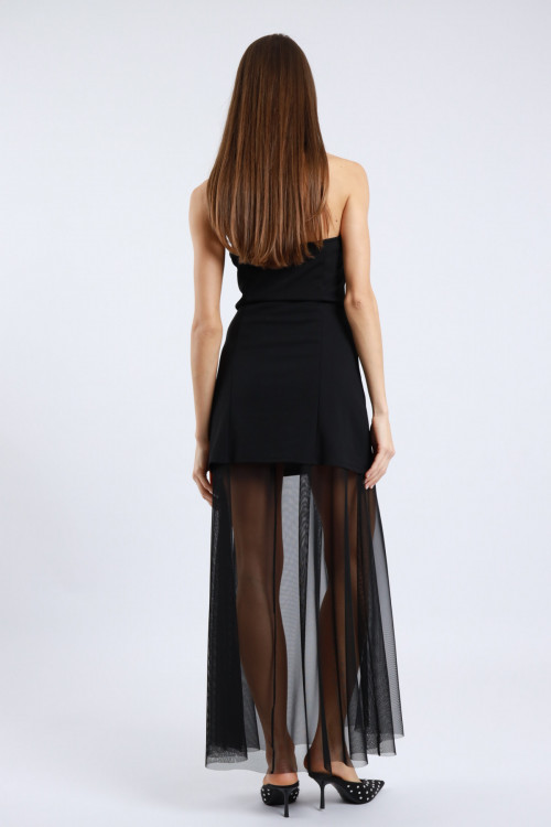 Abito Lungo a Fascia con Gonna Lunga in Tulle.