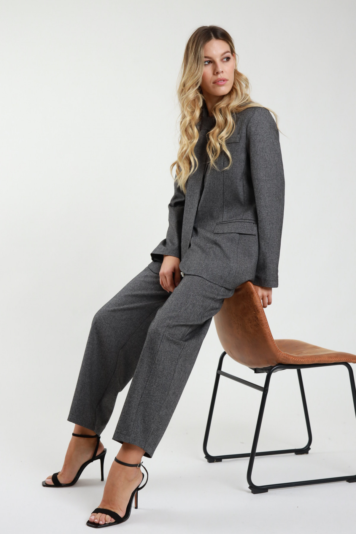 Pantaloni Flanella Ampi, Pinces, Tasche Laterali e Cintura. Dettaglio Bottone sul Fondo.