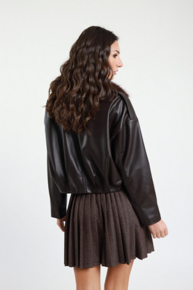 Bomber in Ecopelle con Collo in Ecopelliccia Rimovibile.