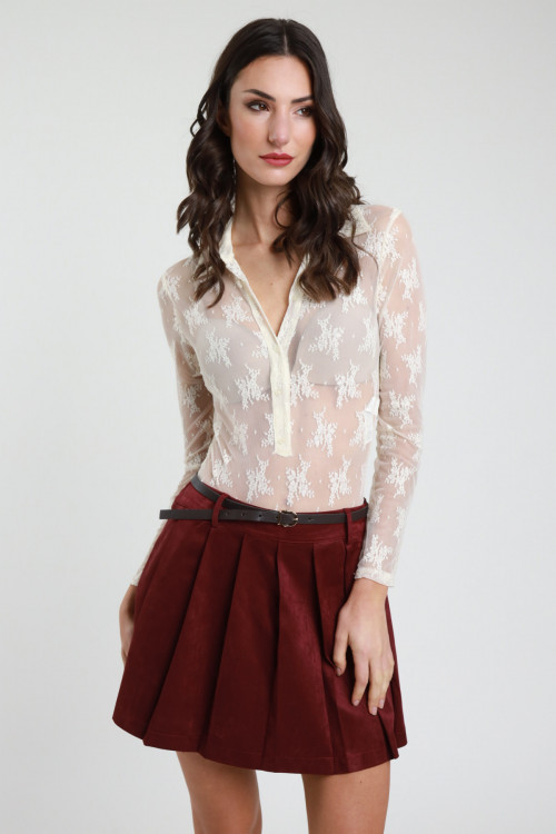 Body Maniche Lunghe in Pizzo Con Scollo a Camicia.