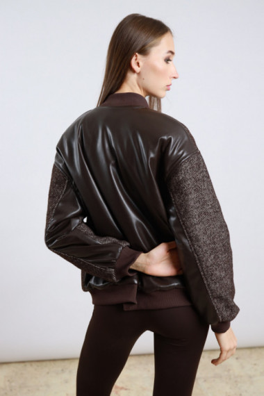 Bomber in Ecopelle con Maniche con Micro Paillettes.