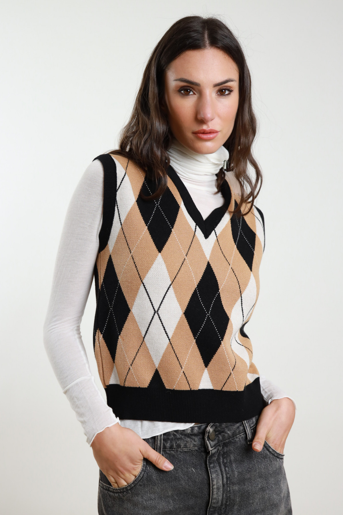 Gilet Slim a Rombi con Scollo a V.