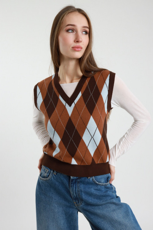 Gilet Multicolore con Chiusura a Bottoni con Due Tasche Frontali.