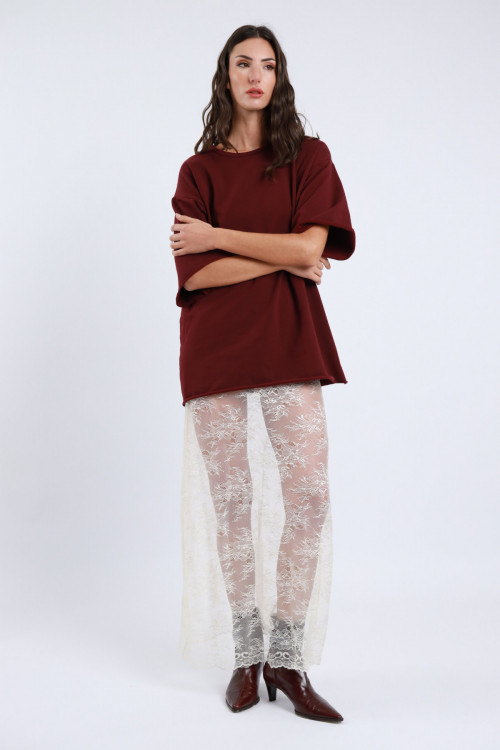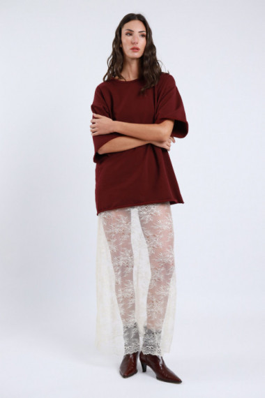 Abito T-Shirt Over con Gonna Lunga in Pizzo.