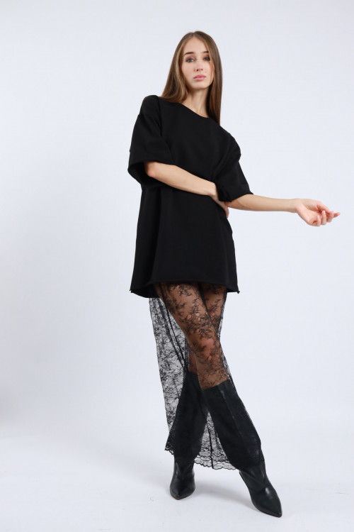 Abito T-Shirt Over con Gonna Lunga in Pizzo.