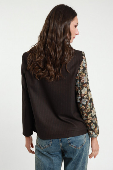 Giacca Check con Rever in Maglia e Dettaglio Patch sul Fronte.