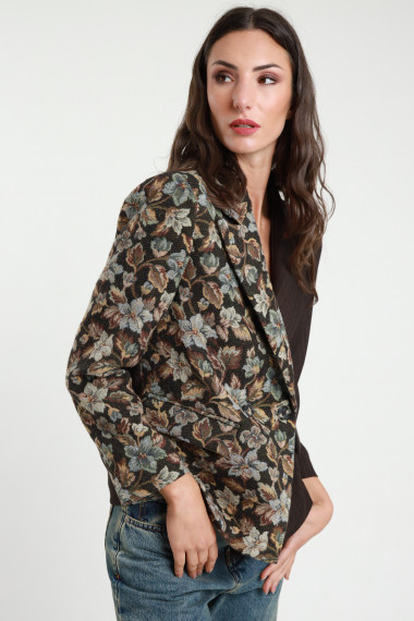 Blazer in Fantasia Animalier Maculata con Fodera Interna a Contrasto e Spilla sul Rever.