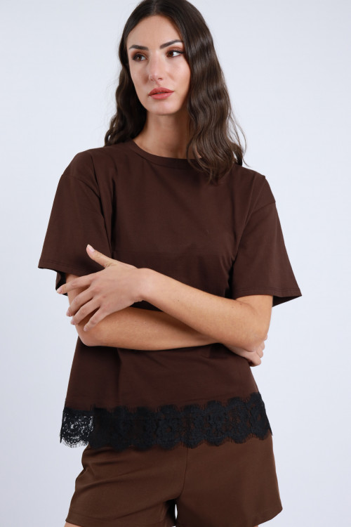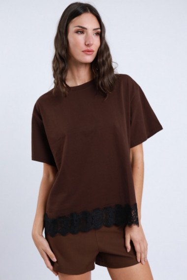 T-Shirt Over con Dettaglio sul Fondo in Pizzo.