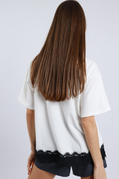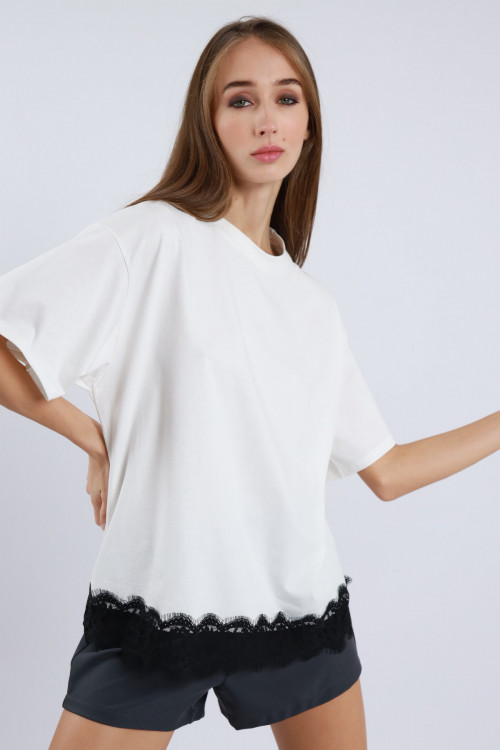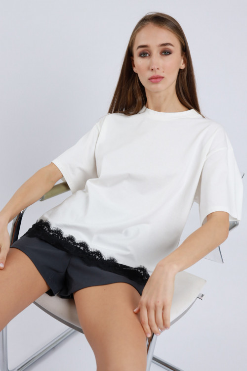 T-Shirt Over con Dettaglio sul Fondo in Pizzo.