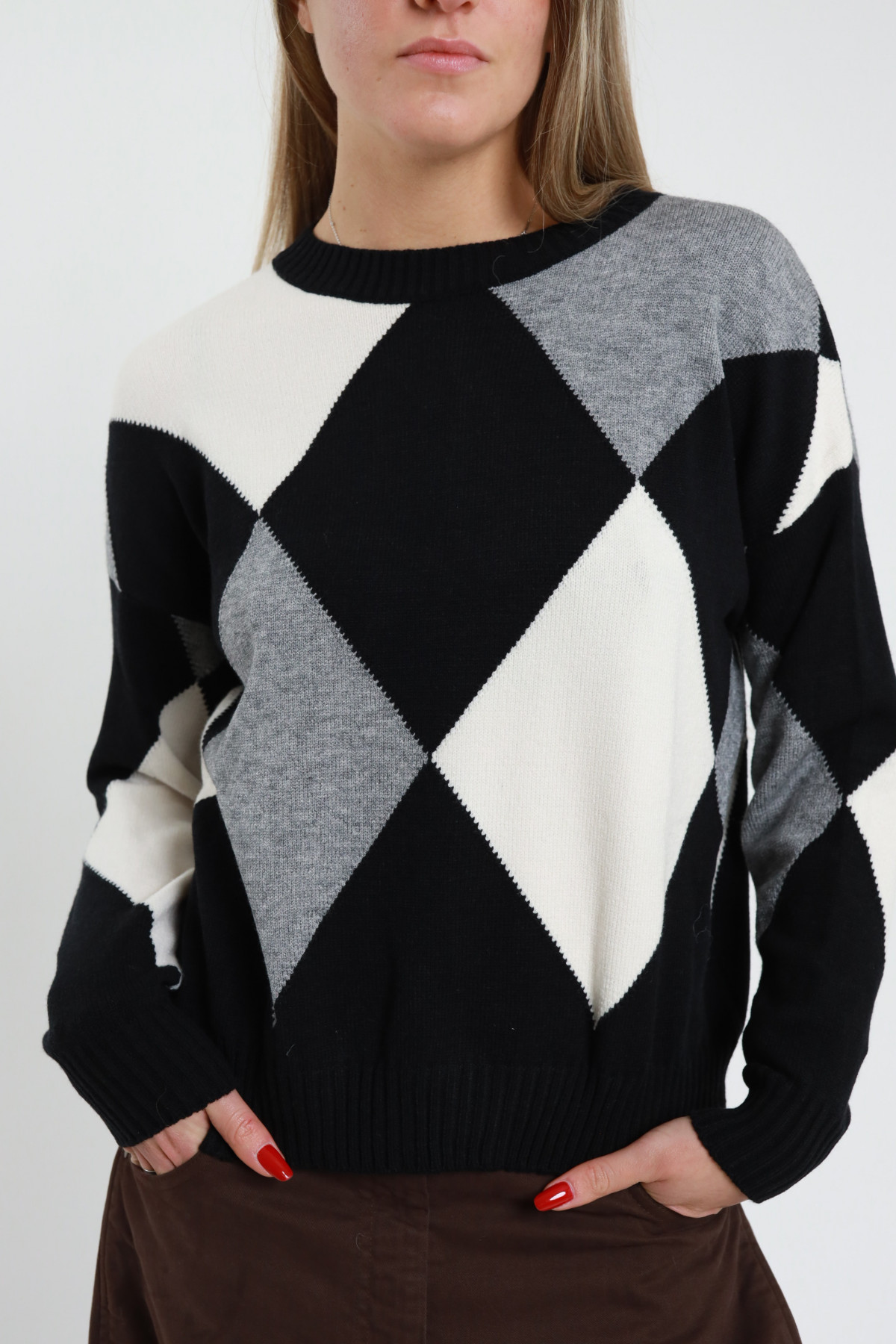 Maglioncino Sottile Girocollo Con Rombi Colorati. 52%VI 26%PL 22%PA