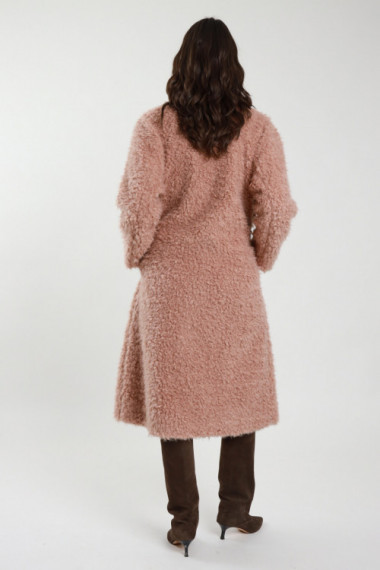 Cappotto Lungo in Ecopelliccia con Tasche Laterali, Senza Chiusura.