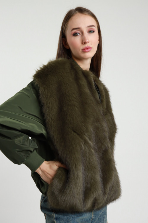 Bomber con Ecopelliccia, Chiusura a Zip e Tasche Laterali.