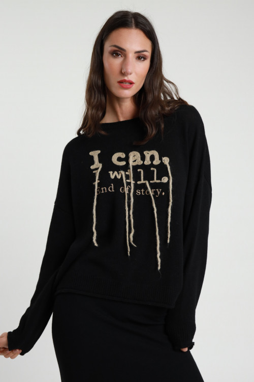 Maglia Girocollo con Scritta Ricamata.