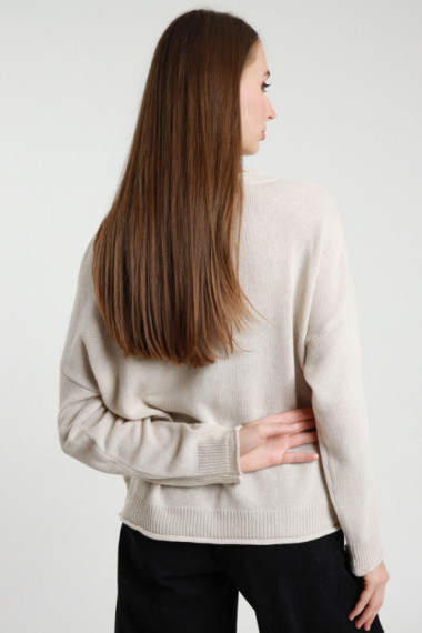 Taillierter Pullover mit Rundhalsausschnitt aus weicher Halbviskose mit Puffärmeldetail