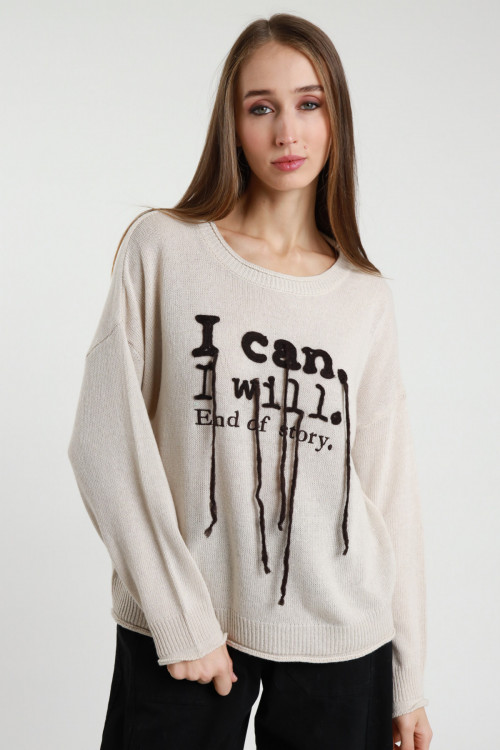 Pullover mit Rundhalsausschnitt und gesticktem Schriftzug. 40 %vi 30 %pa 25 %wo 5 %ws