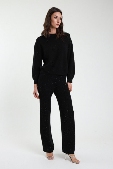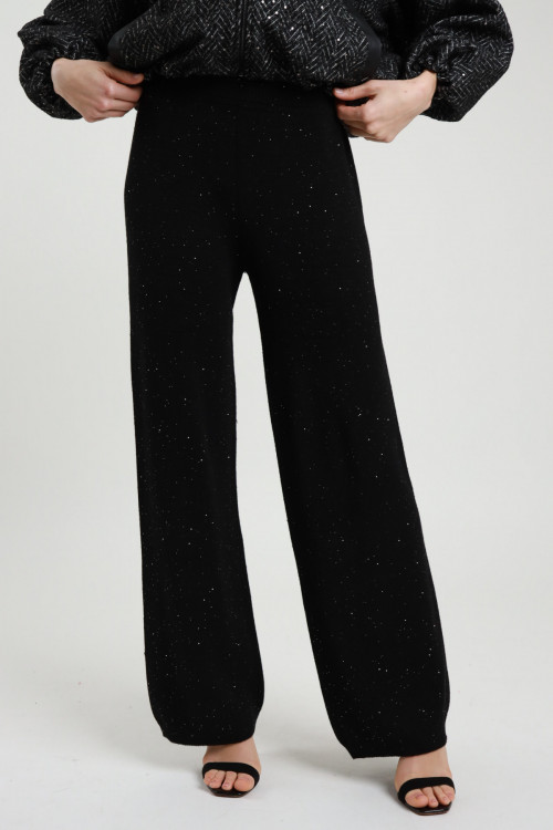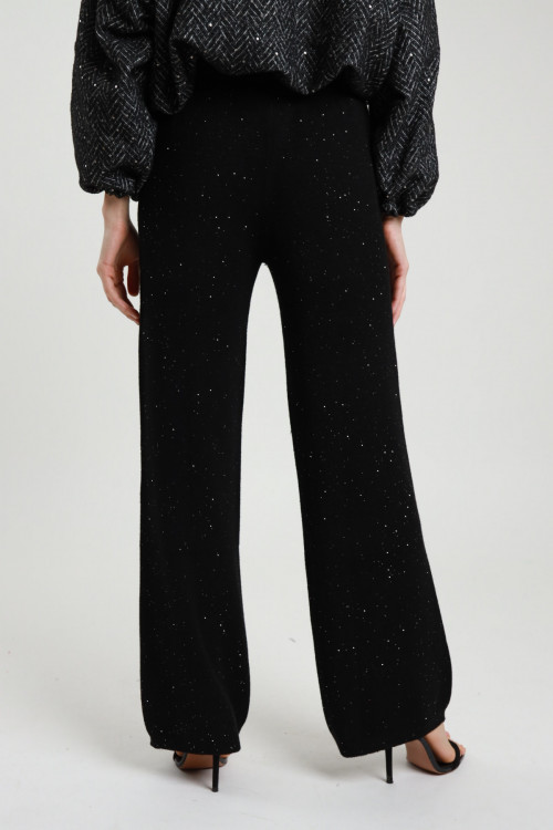 Pantaloni Palazzo in Maglia con Micro Paillettes ed Elastico in Vita.