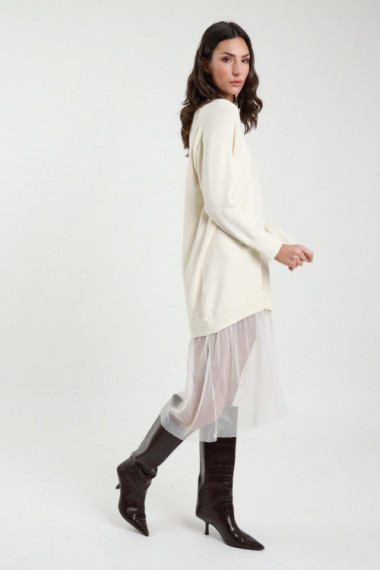 Maxi Maglia Scollo a V con Gonna in Tulle.